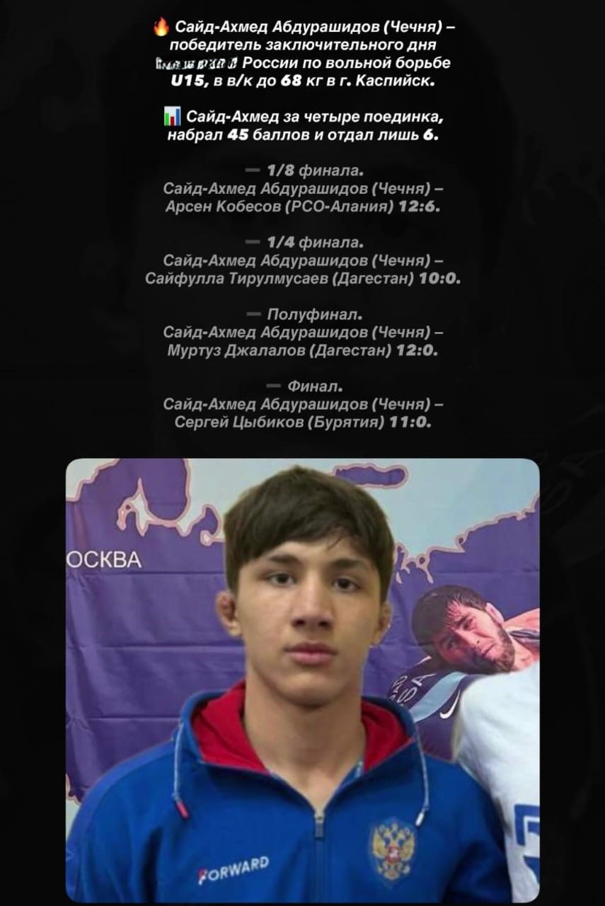 Сайд-Ахмед Абдурашидов - победитель заключительного дня России по вольной борьбе U15, в весовой категории 68 кг. в г. Каспийск.