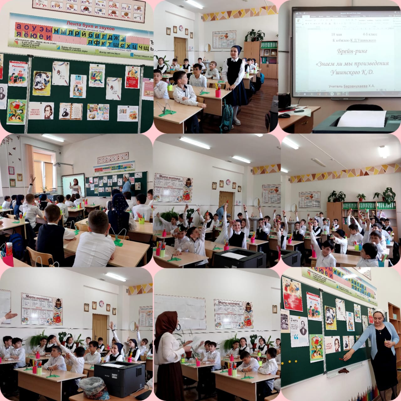 18.05.2023В соответствии с утвержденным Планом проведения Года педагога и наставника в 4б классе ГБОУ "Центр образования г.Шали" (учитель Барзанукаева Х.А.) прошел Брейн-ринг "Знаем ли мы произведения Ушинского К.Д.?" Участники трех классных команд состязались на звание лучшего знатока рассказов Ушинского К.Д. Учащиеся показали богатый читательский опыт, хорошее знание произведений писателя. Содействие в организации и проведении мероприятия было оказано библиотекарем школы Базаевой Б.А.