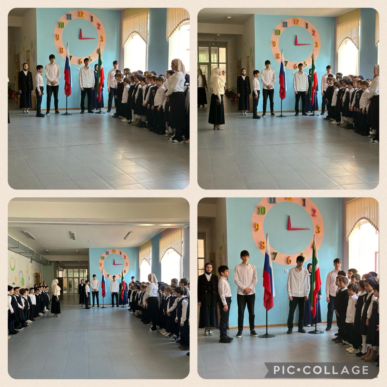 Новая учебная неделя в ГБОУ «Центр образования г.Шали» началась с церемонии поднятия флагов Российской Федерации и Чеченской Республики и исполнения государственных гимнов Российской Федерации и Чеченской Республики.